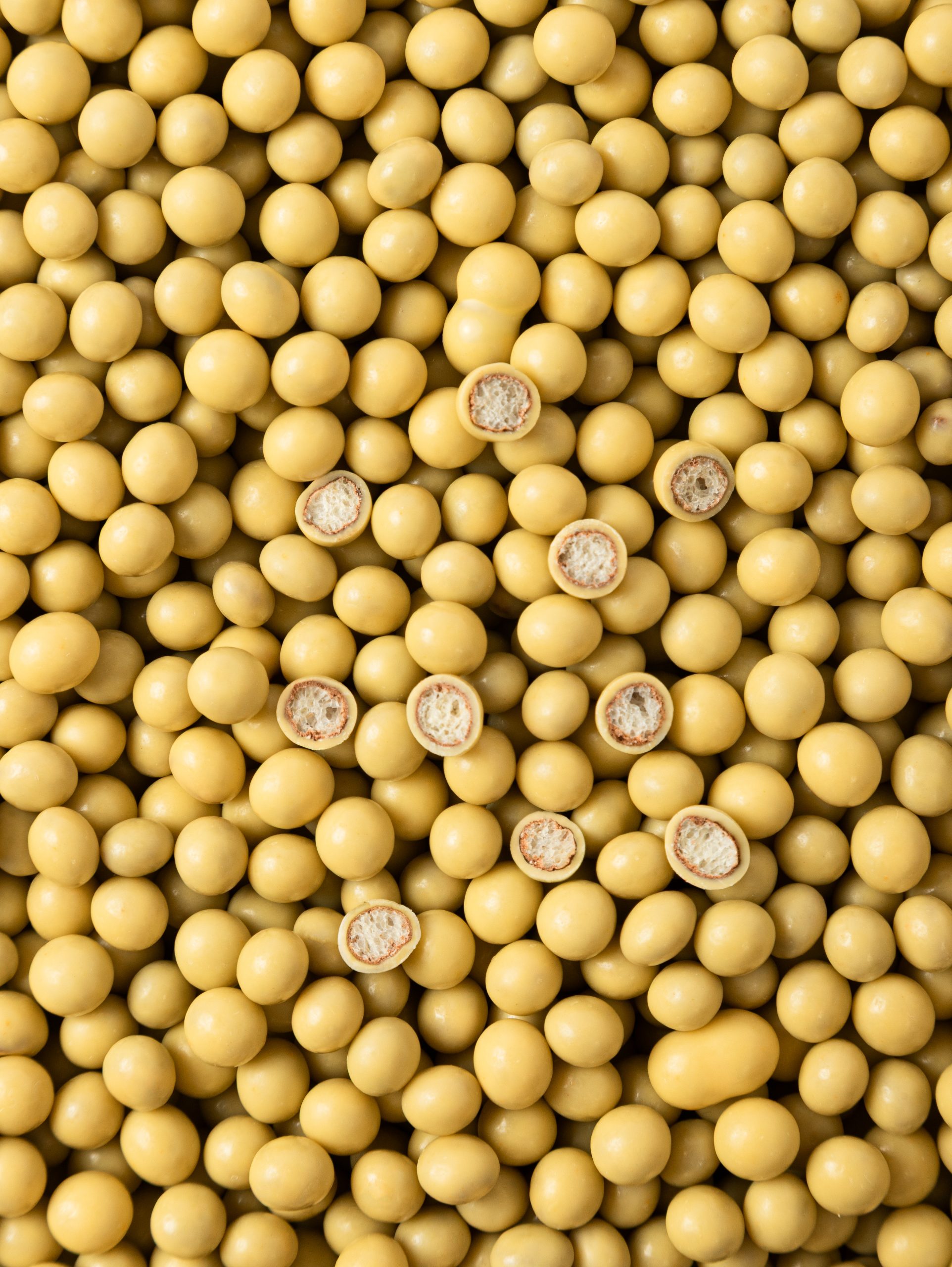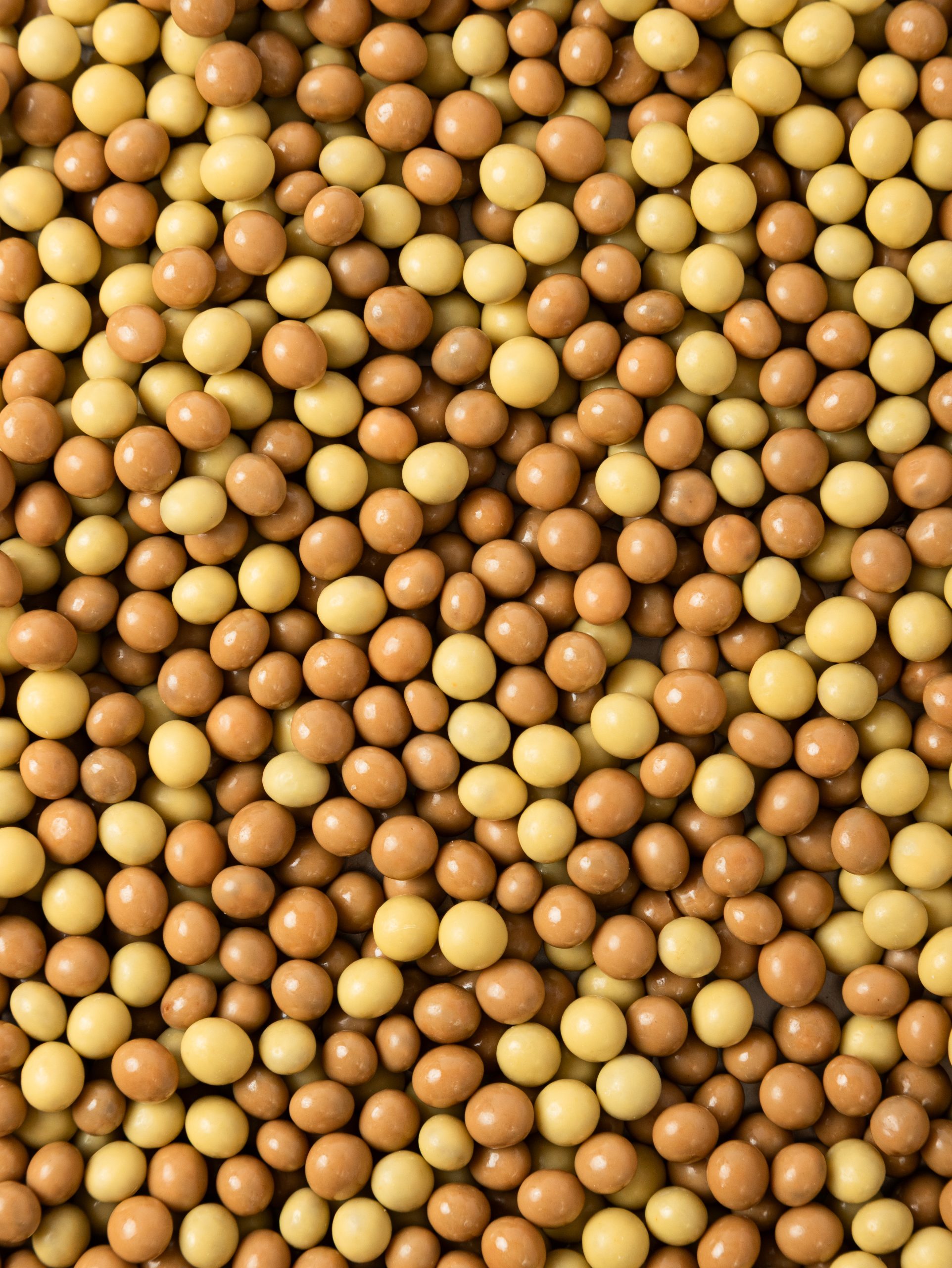 Quinoa inflada recubierta con chocolate y notas de maracuyá, que combina crocancia y frescura.
