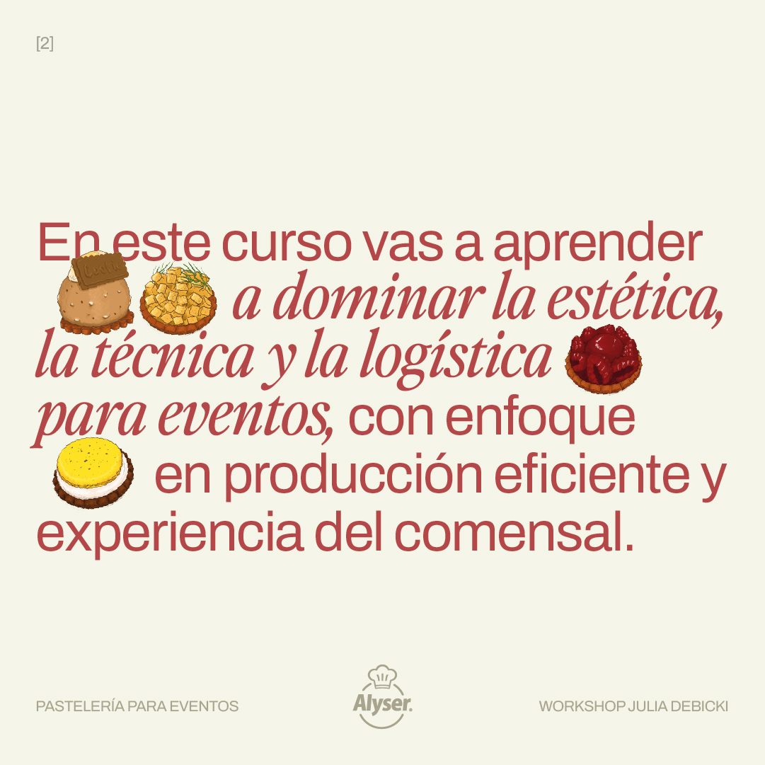 En este curso vas a aprender a diseñar y producir una mesa dulce profesional, equilibrada, moderna y operativamente eficiente; pensando no solo en el sabor y la estética, sino en el rendimiento, la producción y la experiencia del comensal.